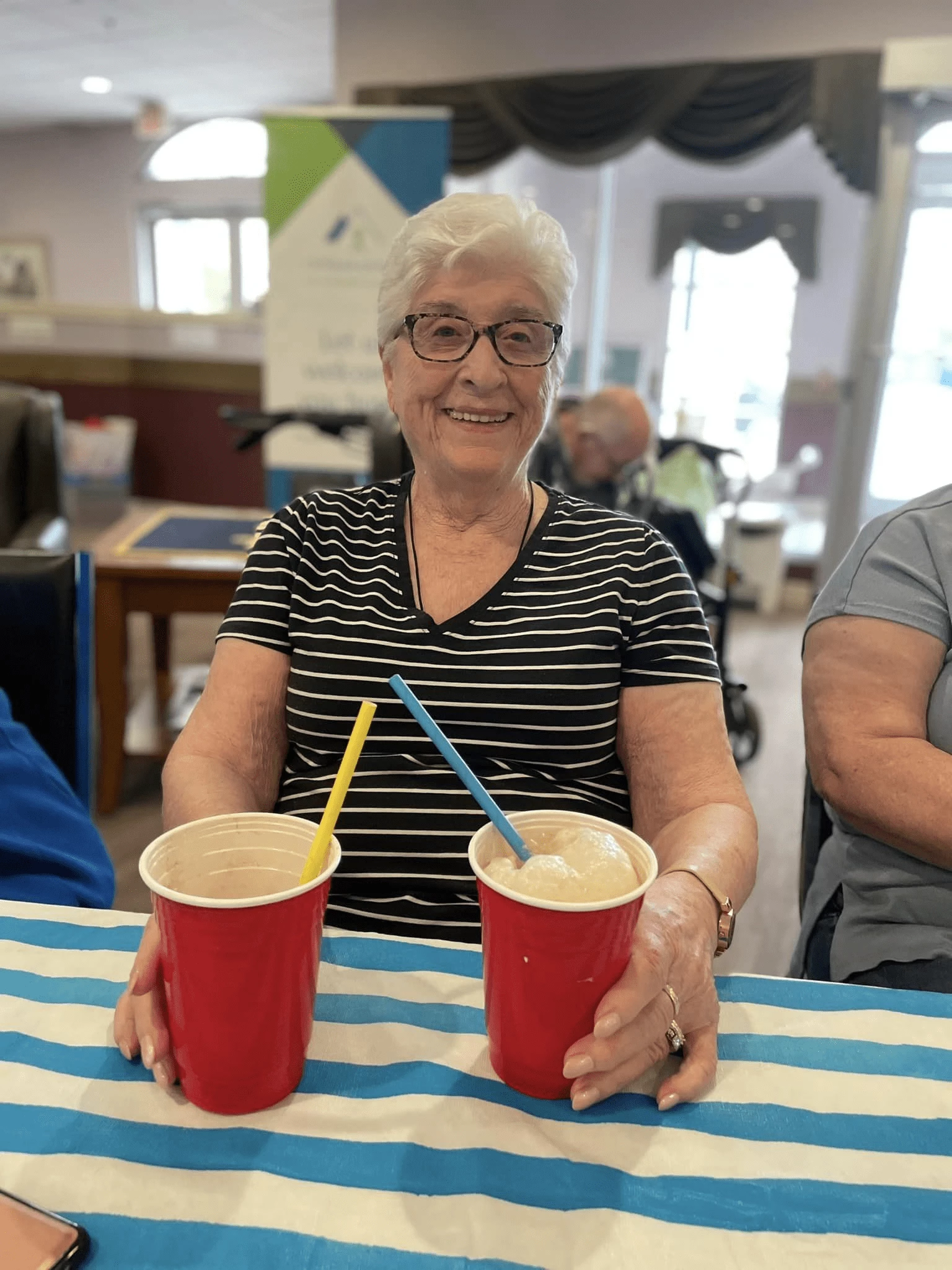 Happy hour was in full swing as residents enjoyed lively conversation and laughter over delicious drinks and snacks. They reminisced about old times, shared stories, and built new friendships.