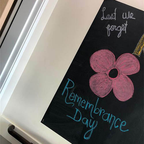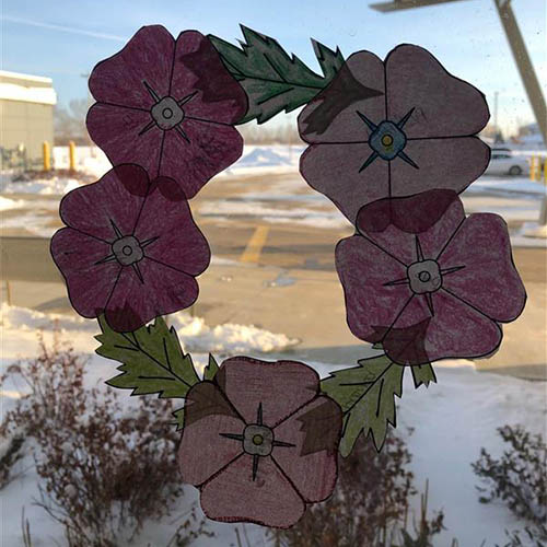 Coloured and assembled poppy wreaths earlier in the week, the legion came by and we all did a toast.