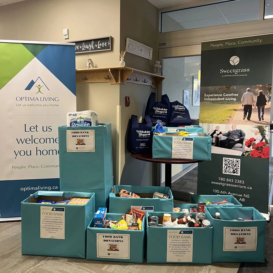 “The Strathcona Food Bank is grateful for the very generous donations the residents of the three Sherwood Park Optima Living locations collected for us. They collected 3267 pounds of non-perishable food items (including cash donations) that will help us build hampers for our clients. Our hamper numbers have doubled in three years and we need all the support we can get. The residents can be very proud for helping to relieve food insecurity in Strathcona County. We are proud of the community spirit and generosity Optima Living demonstrates.”